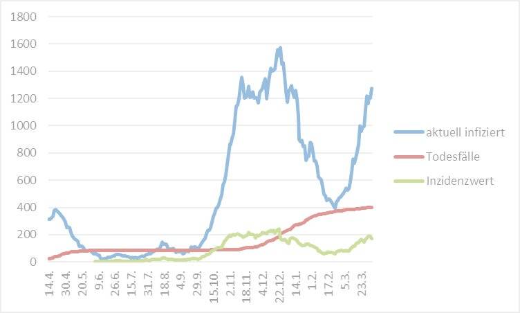 Seit Ausbruch der Pandemie liegt die Gesamtzahl der infizierten Menschen in Wuppertal damit jetzt bei 15.474 davon aktuell infiziert sind die erwähnten 1.273 Personen. Genesen sind 13.799 Wuppertaler, verstorben 402.