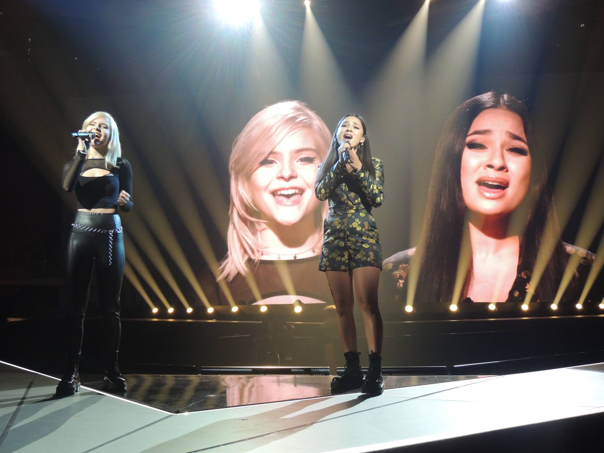 Zu Beginn des Songs sieht man sie jeweils alleine singen, die eine rechts und die andere links, und mit der zweiten Strophe beginnen sie dann, wie auf dem Laufsteg aufeinander zuzugehen – und treffen sich zum zweiten Prechorus in der Mitte. Die Stimmen harmonisieren perfekt. Und spätestens, wenn man sie auf der anschließenden Pressekonferenz erlebt hat, merkt man, dass sich zwischen ihnen eine Freundschaft entwickelt hat.