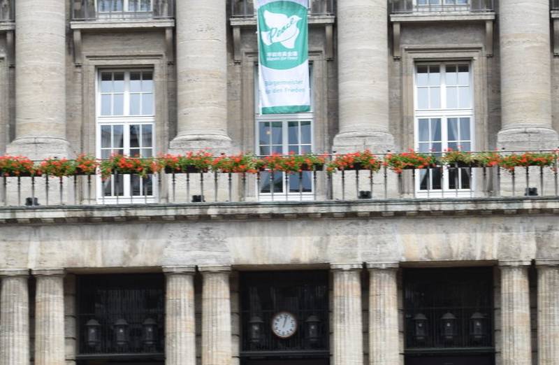 Auch am Wuppertaler Rathaus wird die Flagge der „Mayors for Peace“ gehisst. Mittlerweile beteiligen sich deutschlandweit immer mehr Städte an der Aktion, rund 400 Bürgermeisterinnen und Bürgermeister sind bei der Aktion gegen Atomwaffen dabei.„Jedes Jahr am 8. Juli setzen die ,Mayors for Peace‘ mit dem Hissen der Flagge ein sichtbares Zeichen für eine friedliche Welt ohne Atomwaffen“, sagt Oberbürgermeister Uwe Schneidewind. „Auch Wuppertal ist seit vielen Jahren dabei. Gemeinsam treten wir dafür ein, dass es kein neues atomares Wettrüsten geben darf. Denn wir haben die Verpflichtung, den nachfolgenden Generationen eine sichere, stabile und friedliche Welt zu schaffen und zu bewahren.“