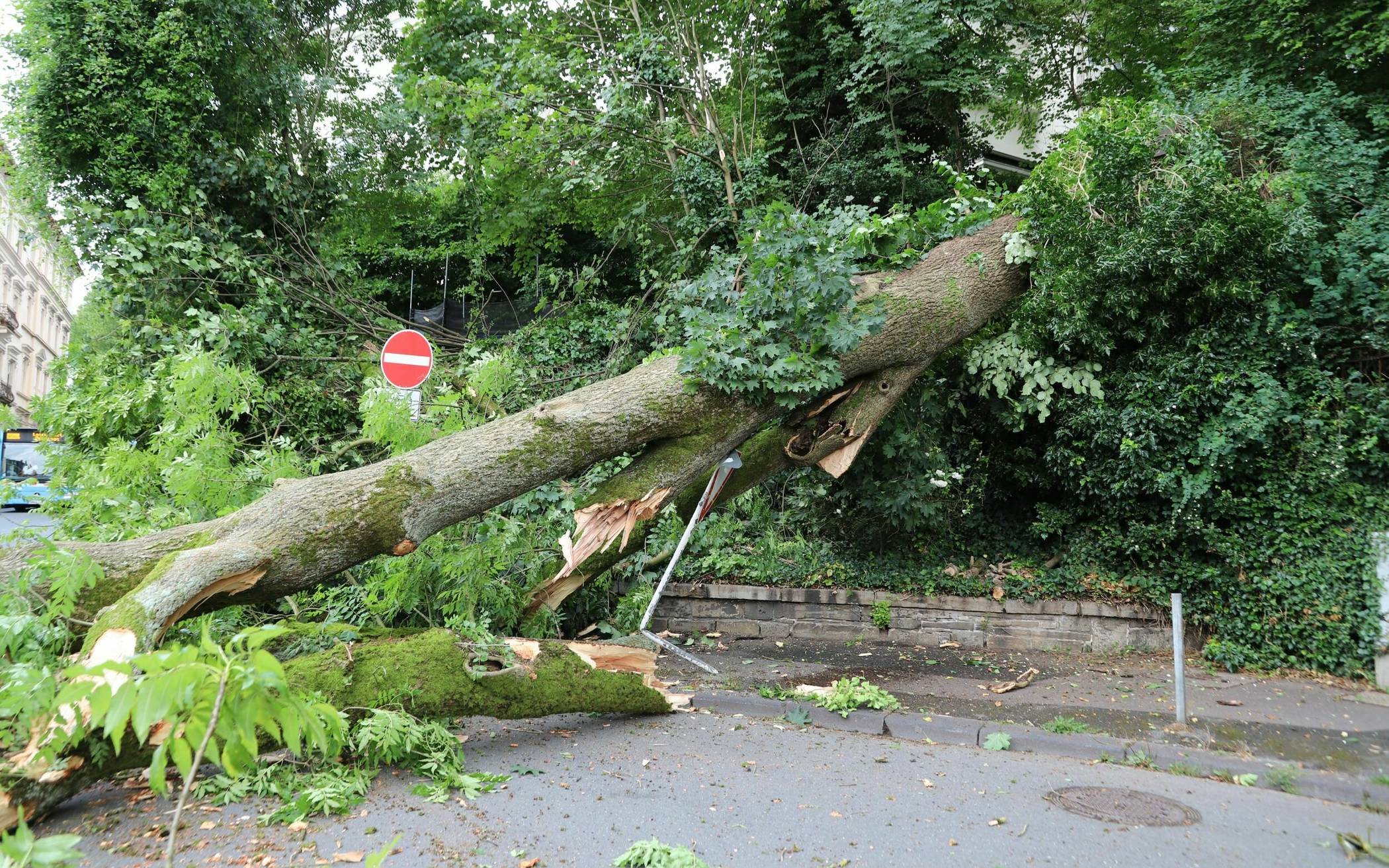 Bilderstrecke Baum kippt auf Straße