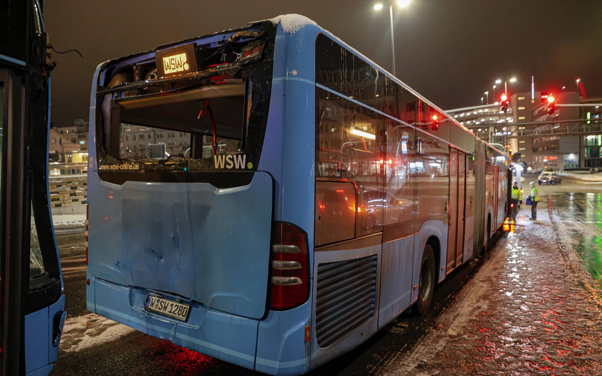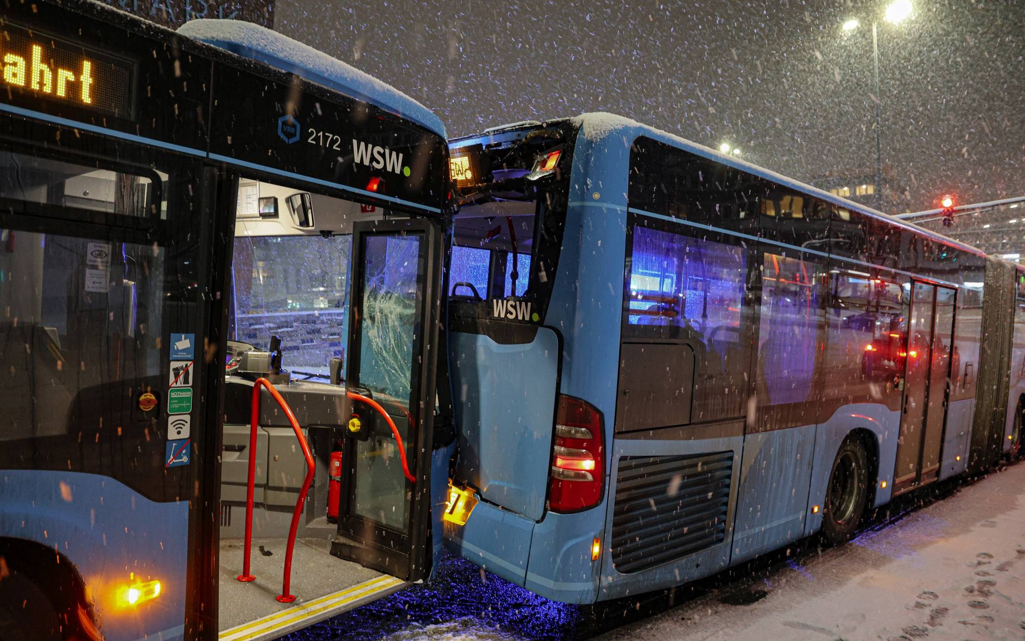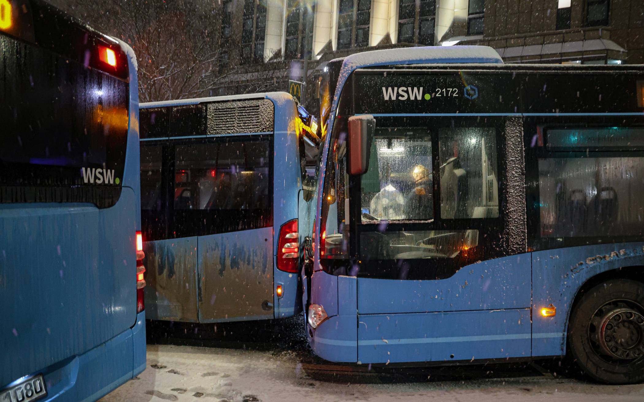 Bilderstrecke Busse stoßen durch Glätte zusammen