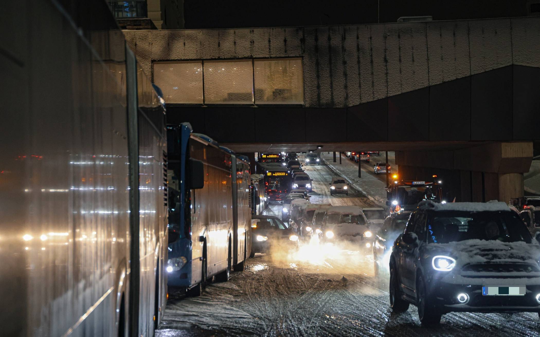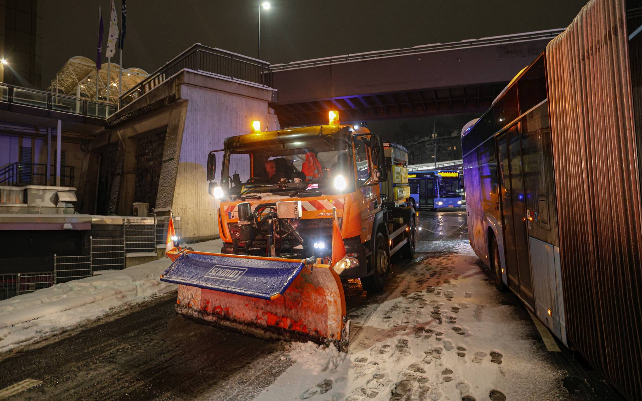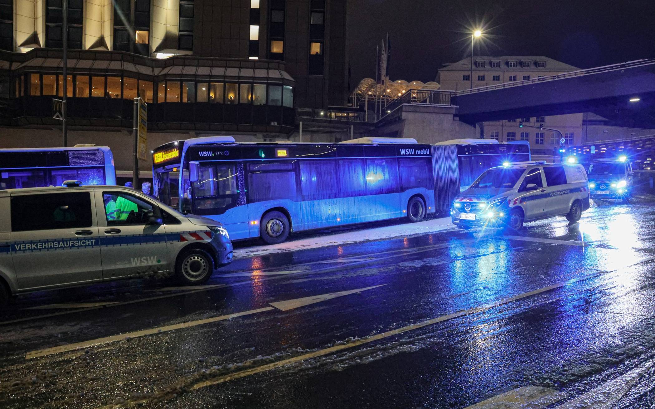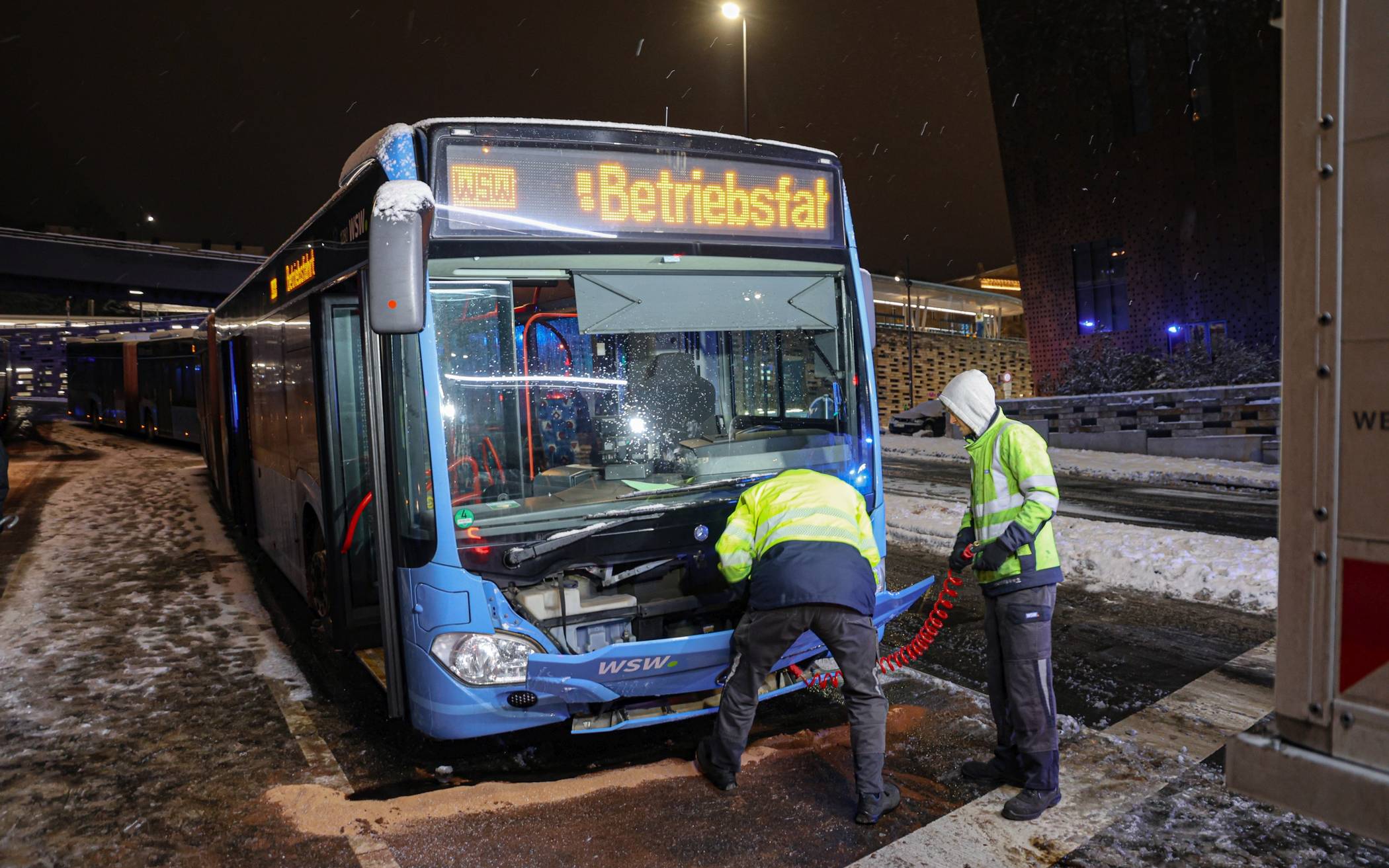 Bilderstrecke Busse stoßen durch Glätte zusammen