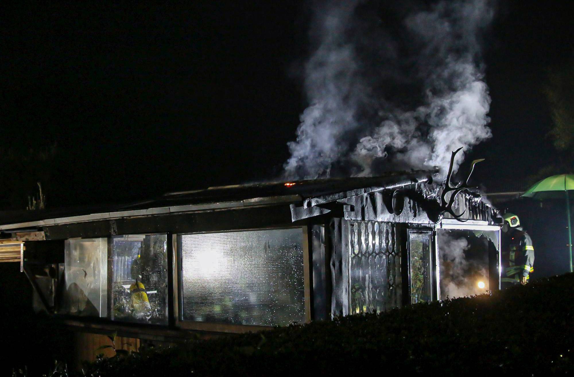 Gartensiedlung Blombach Dach einer Laube gerät in Flammen