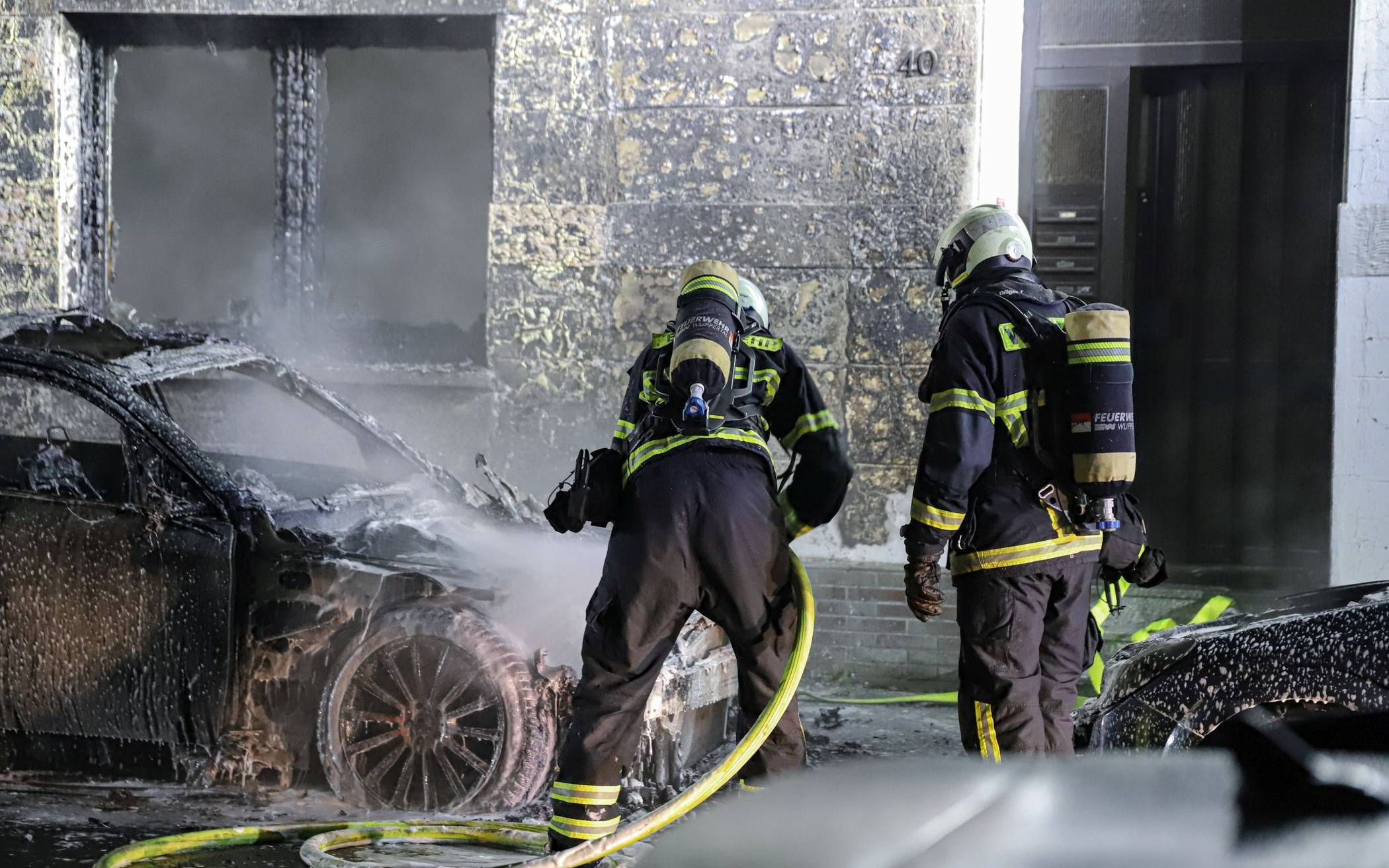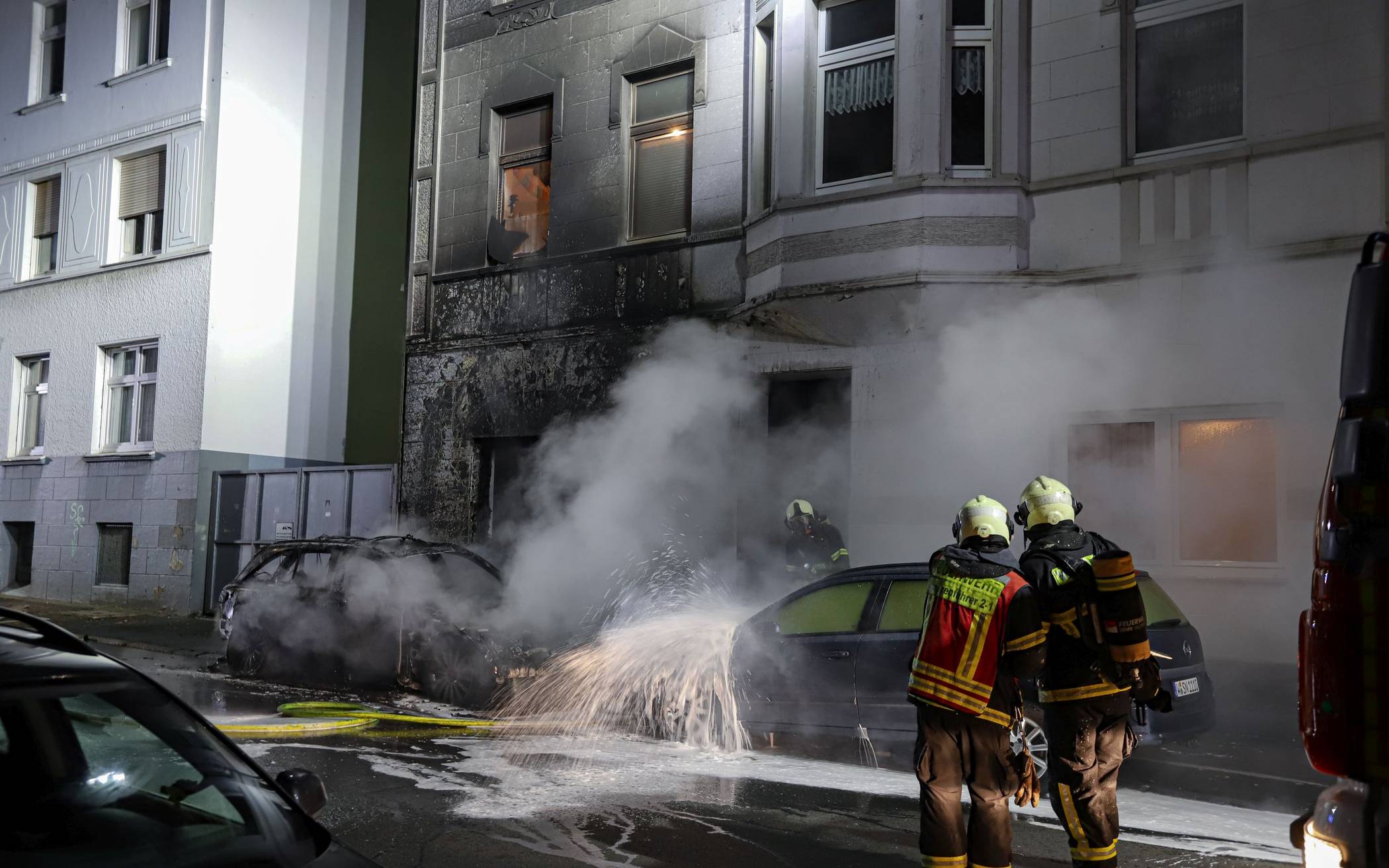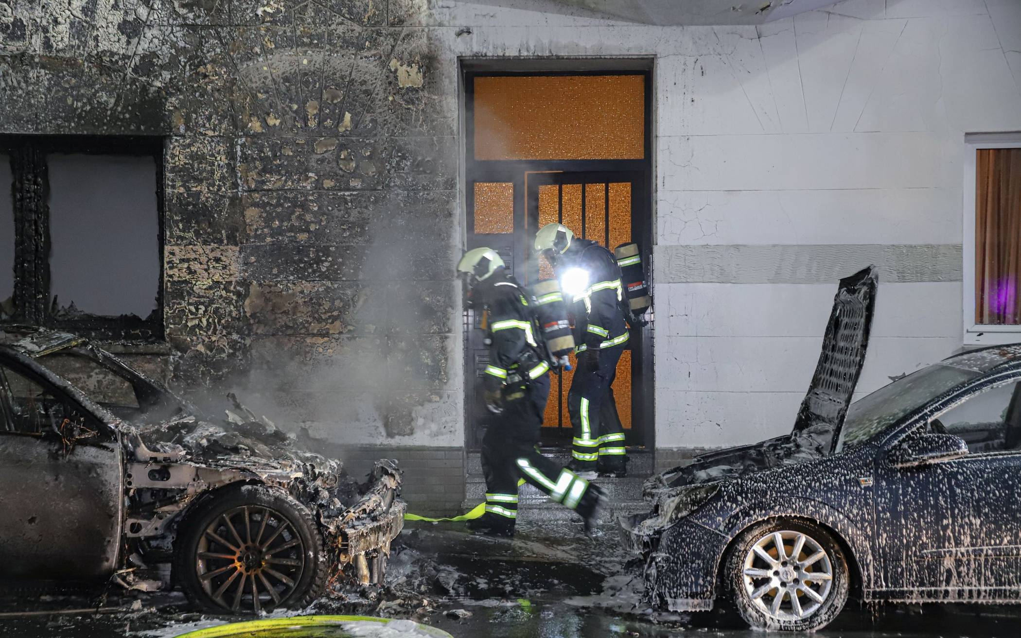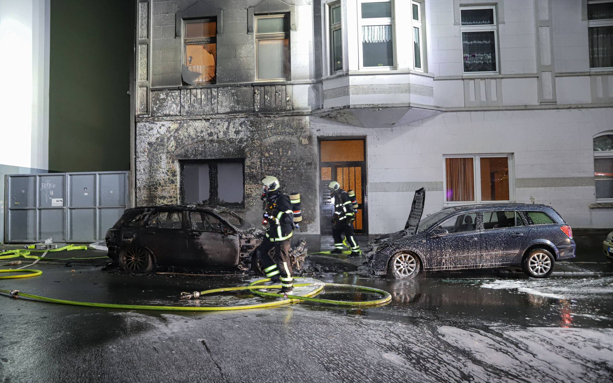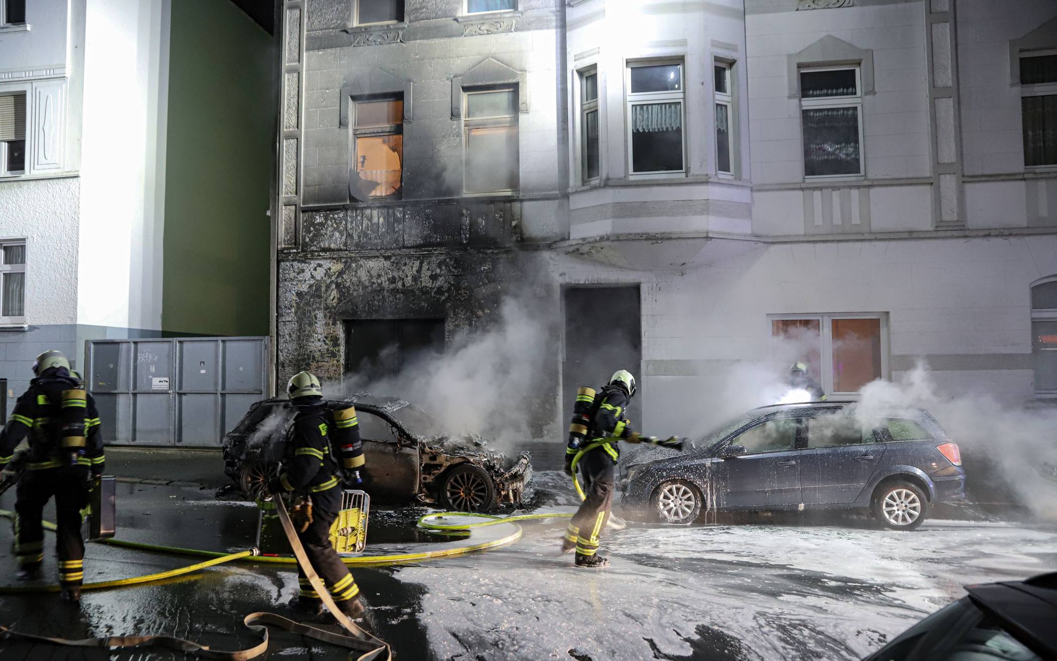 Bilderstrecke Haus nach Brand von Autos evakuiert