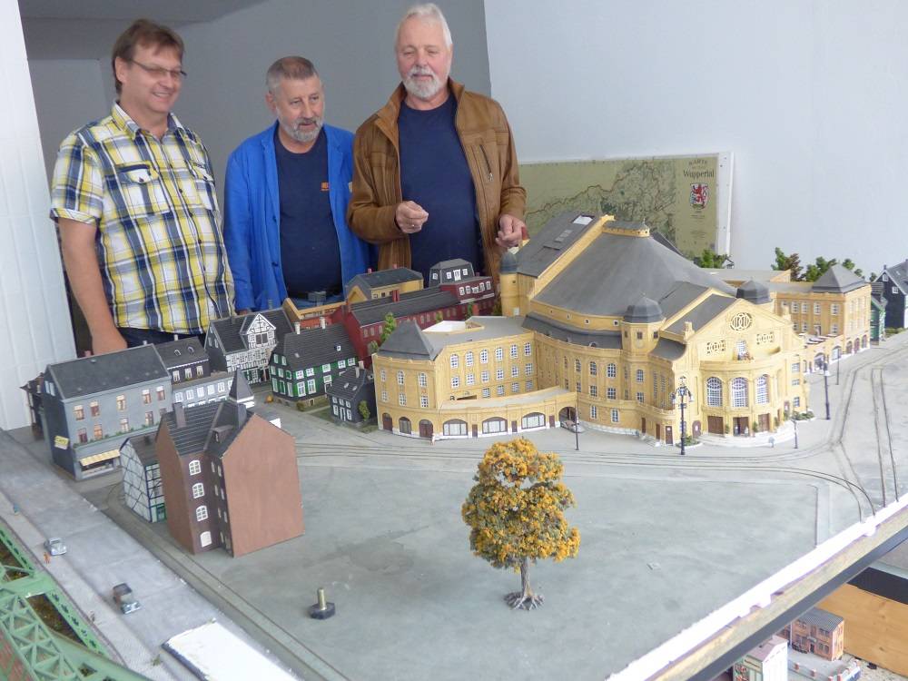 Noch stecken die Mitglieder der "Wuppertalachse" mitten im Umzugstrubel: Kisten, säuberlich mit Inhaltsangaben beschriftet, stehen an allen Ecken und in den Räumen im Untergeschoss. Doch schon ist zu sehen, dass sich im ehemaligen Edeka-Markt an der Goethestraße 42 eine Menge tut. Erste Modelle, wie etwa die Oper oder die Stadthalle, das Engelshaus, der alte Bahnhof Rittershausen, stehen auf Tischen, warten darauf, ins Ensemble eingefügt zu werden. Die ein oder andere Reparatur ist ebenfalls noch zu bewältigen, denn die Umzüge der vergangenen Jahre haben ihre Spuren hinterlassen.