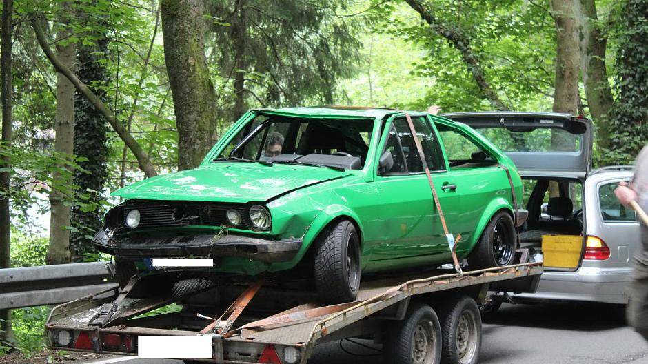 Bilderstrecke Pkw landet auf dem Dach