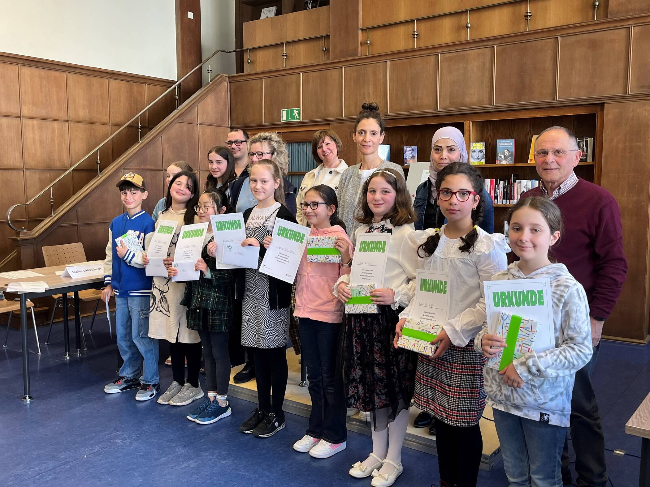 Mit diesem anspruchsvollen Auftritt beteiligten sie sich am mehrsprachigen Vorlesewettbewerb im Bücherschiff der Zentralbibliothek, einer Veranstaltung in Kooperation mit dem Kommunalen Integrationszentrum (KI), die in diesem Jahr bereits zum achten Mal stattfand.