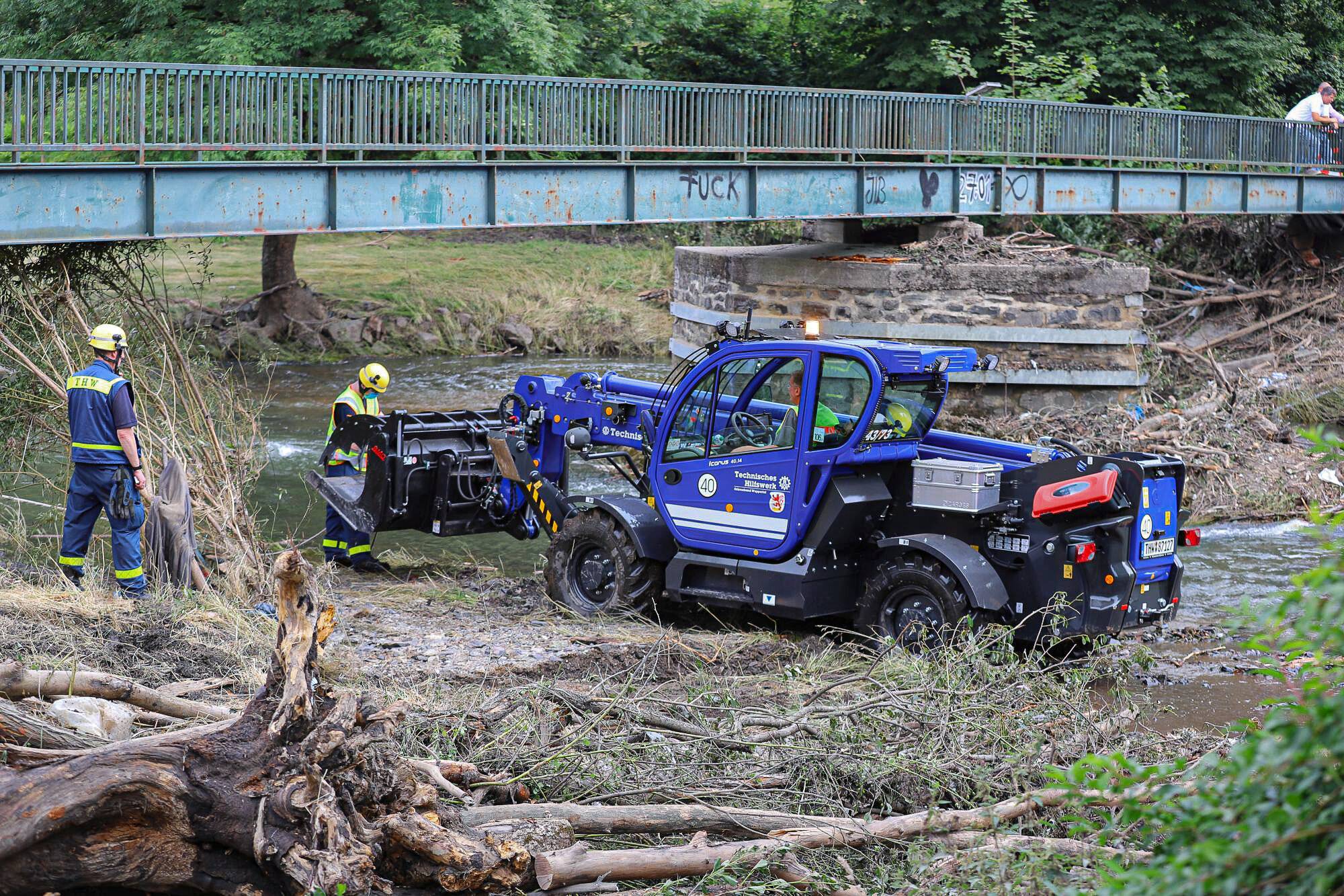 Dennoch könnten bei Starkregen die Pegel ansteigen: „Denn auch seitliche Nebengewässer unterhalb von Talsperren können der Wupper oder den Bächen viel Wasser zuführen.“ Die Staudämme und Staumauern des Wupperverbandes seien „sicher und voll in Funktion“, alle Arbeitsbereiche (Talsperren, Kläranlagen, Gewässerbetrieb, Hydrologie) für das Wochenende in Bereitschaft gesetzt. „Im Bedarfsfall erfolgen dann aktuelle Situationsanalysen über das Hochwasserportal und Informationen an die zuständigen Stellen“, heißt es. Allerdings hätten sich durch das Hochwasser vom 14. Juli „Unmengen von Baumstämmen, Treibgut und Geröll in der Wupper und ihren Nebenbächen gesammelt. Die Wassermassen haben in Teilen auch Bachläufe und Uferbereiche geschädigt. Der Gewässerbetrieb kontrolliert seit dem Hochwasser mit allen verfügbaren Kräften die Bachläufe und einschlägige Stellen, zum Beispiel Rechen vor Gewässer-Verrohrungen, nimmt Schäden und Verstopfungen auf und bearbeitet sie nach Priorität. Diese Arbeiten werden noch viel Zeit beanspruchen.“