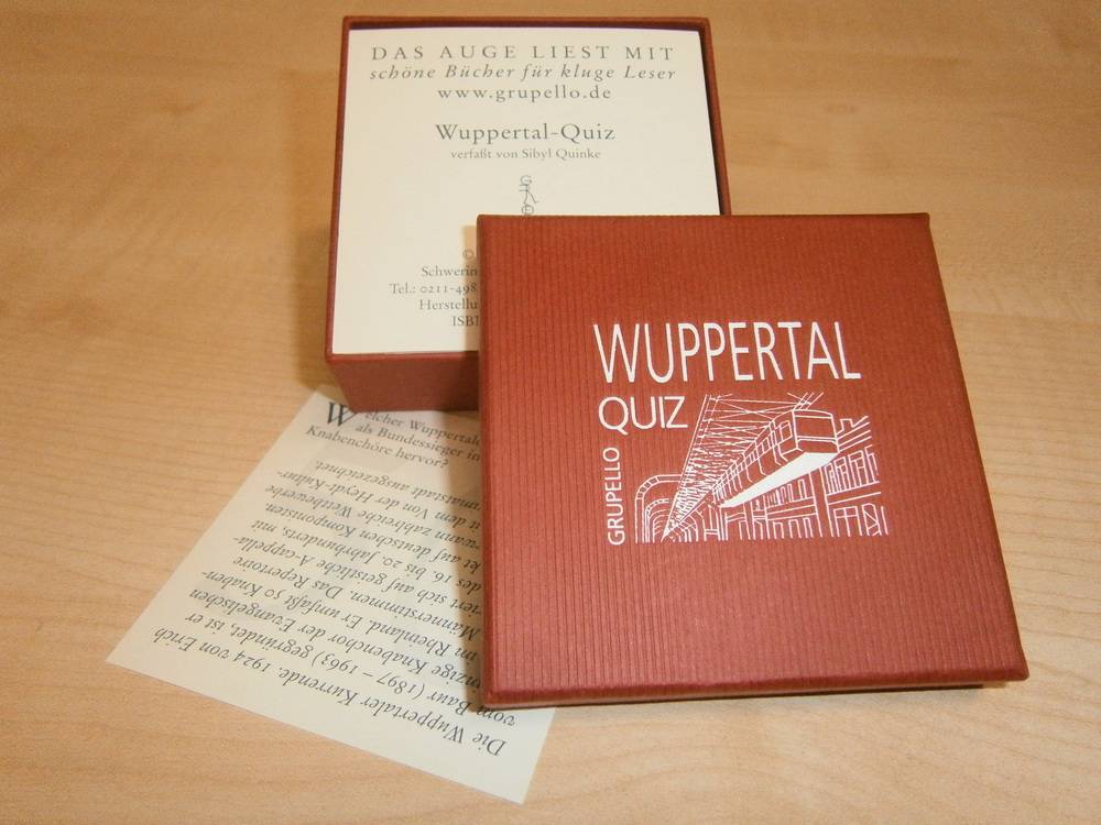Sibyl Quinke hat sich mit der Zusammenstellung der Fragen und ausführlichen Antworten dieses Wuppertal-Quiz viel Mühe gemacht: Ein echtes Schmuckstück in einem schönen kleinen Schmuckkästchen.