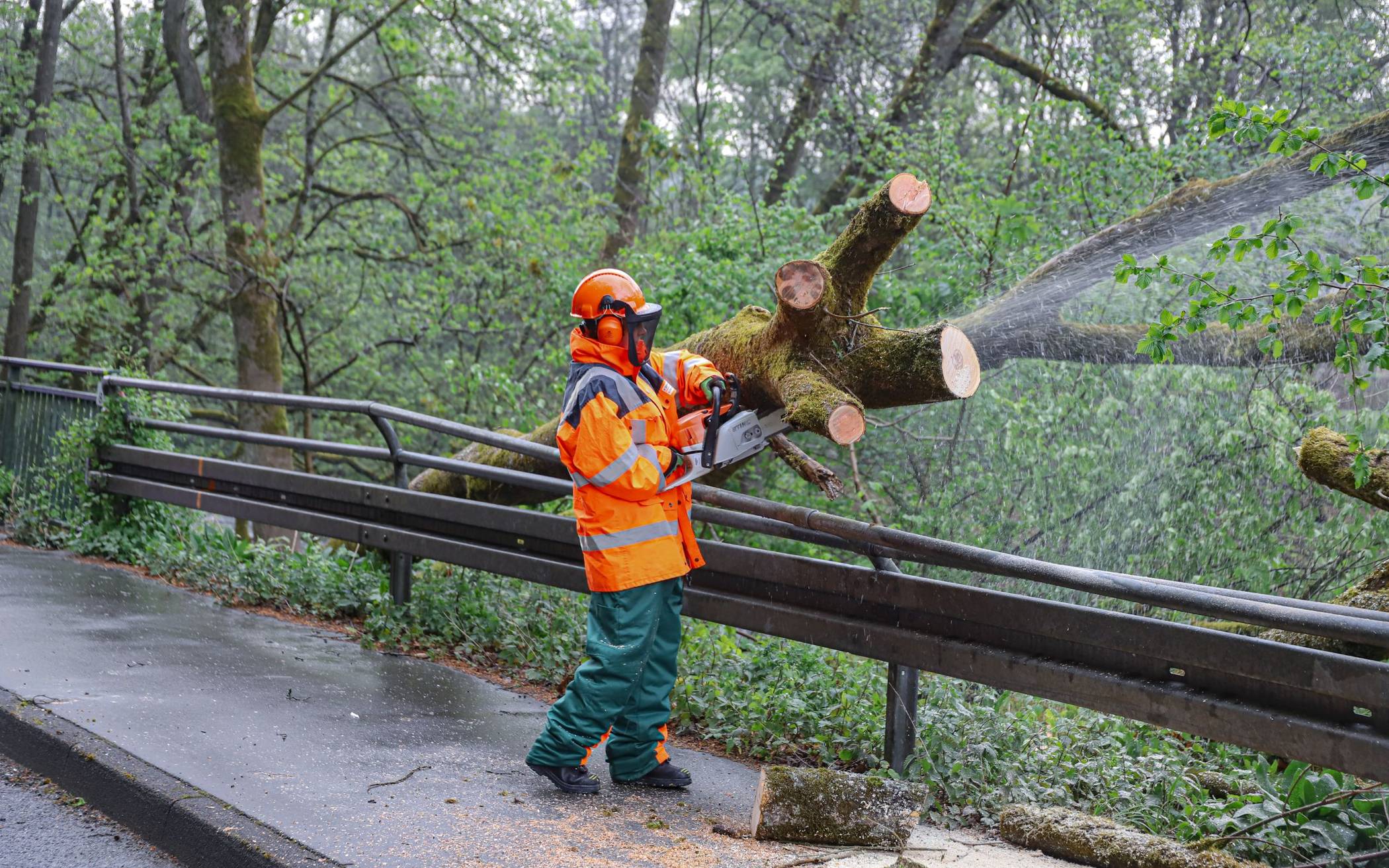Bilder Feuerwehr entfernt umgestürzten Baum