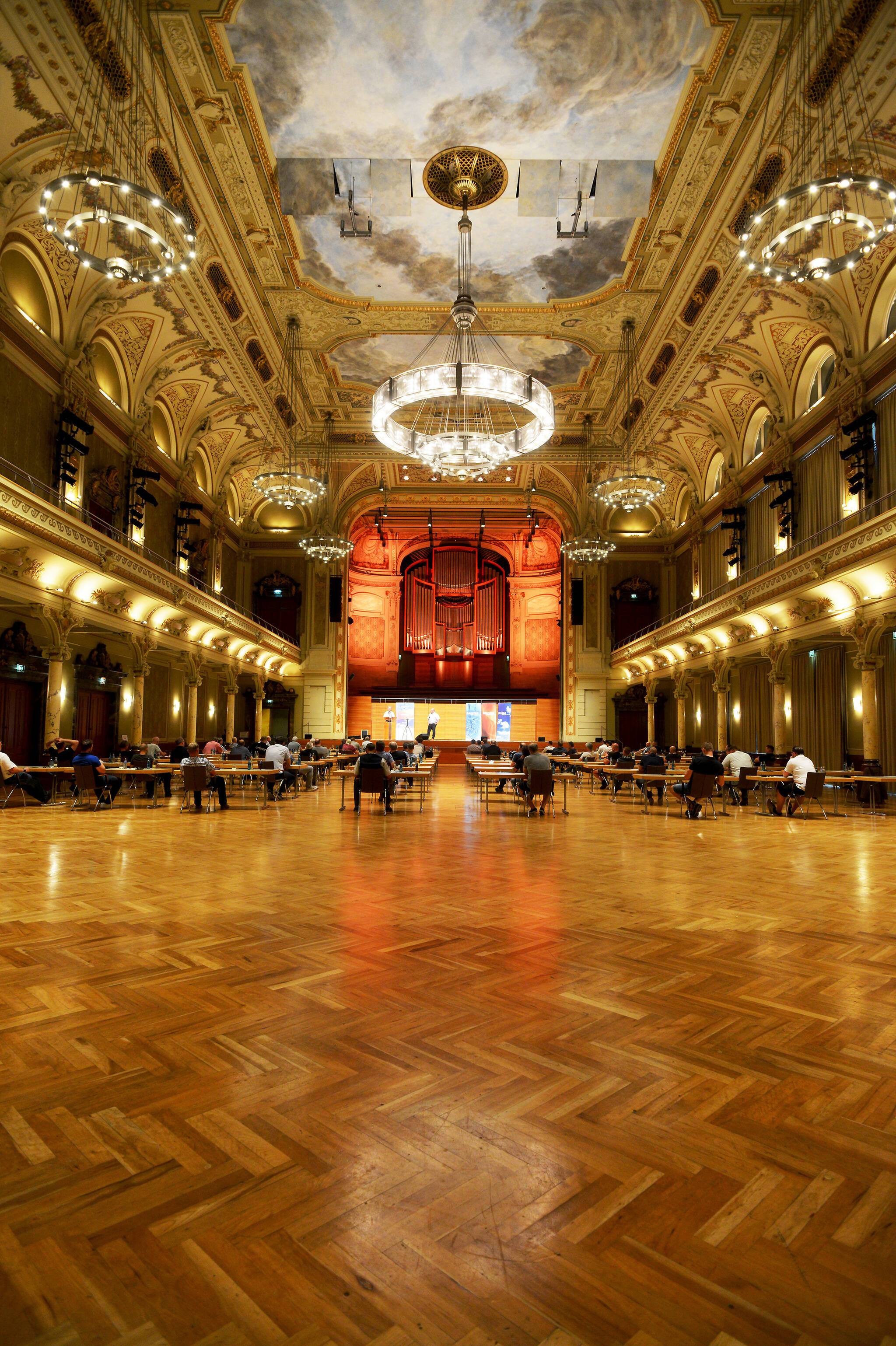 Die Hauptversammlung der Wuppertaler SHK Innung - 2020 Corona-bedingt mit 68 Teilnehmern an Einzeltischen in der Stadthalle.