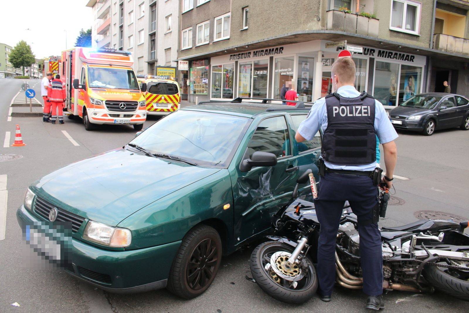 Der Zweiradfahrer war in Richtung Barmen unterwegs, als aus der Oberen Sehlhoffstraße eine Pkw-Fahrerin nach links abbiegen wollte und offenbar das Motorrad übersah.