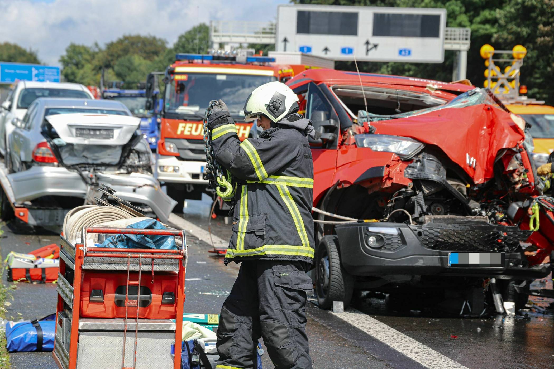 Die Notärzte entschieden nach den ersten Maßnahmen, den Patienten mit einem Rettungswagen in ein Krankenhaus zu fahren. Die beiden anderen Fahrzeugführer blieben nach ersten Informationen unverletzt. Aufgrund einer nicht ordnungsgemäßen Rettungsgasse war ein Notarzt zunächst zu Fuß zur Einsatzstelle unterwegs. Dies bemerkte ein Reiserückkehrer und lieh ihm daraufhin spontan ein Fahrrad, damit der Notarzt schneller vorankam.
