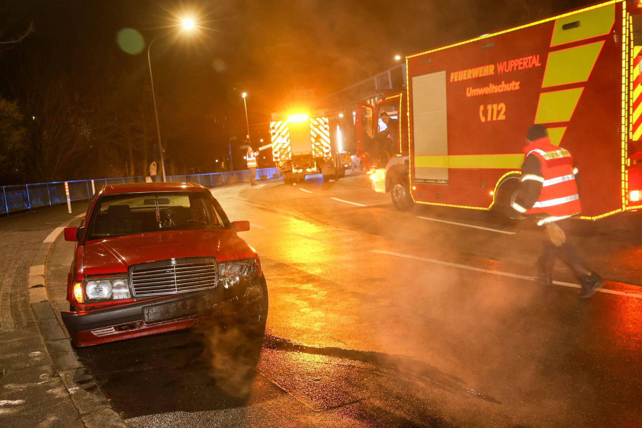 Der Fahrer blieb unverletzt, der Wagen musste abgeschleppt werden. Die Höhe des Sachschadens ist noch nicht bekannt. Weil größere Menge an Kraftstoffen ausgelaufen waren, setzte die Feuerwehr ihr Spezialfahrzeug für die Ölbeseitigung ein. Der Einsatz dauerte bis 22 Uhr. Die Straße war währenddessen gesperrt.